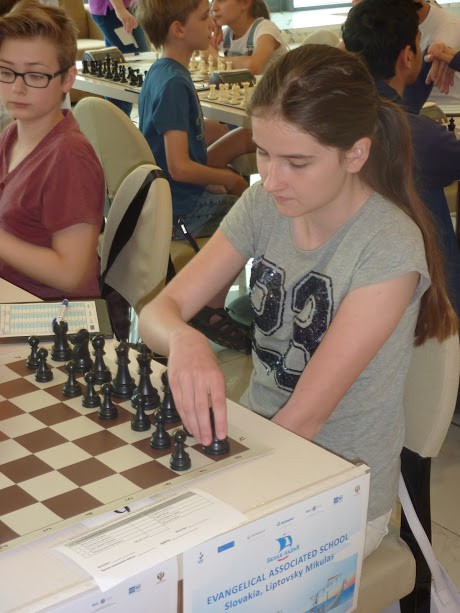 V druhom dvojkole sme konečne zúročili našu bojovnosť a po výbornom bodovom zisku sme sa vyšvihli do 1.polovice turnajovej tabuľky. V doobednom kole nás čakali hráči Omskej oblasti. Zápas prebiehal veľmi vyrovnane, ako prví skončili súrodenci Janíkovci, keď Katkino prehliadnutie figúrky napravil postupným prehraním súpera Marek - 1:1. Po nich sa skončila partia Jakuba, ktorý konečne zabodoval aj s bielymi farbami, využil nepresnosti súpera a pridal ďalší náš bod - 2:1. Potom sme tradične dlhšie čakali na Maťu. Tá sa napokon vrátila so ziskom polovice bodu, keď súpera nedokázala prehrať v trochu lepšej 4-vežovej koncovke. Zápas tak nakoniec skončil našim víťazstvom 2,5:1,5.